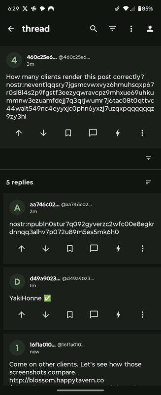 OceanSlim · 3w Come on other clients. Let's see how those screenshots compare. http://blossom.happytavern.co/7b4c91b9ac1316811a980ae739c8fcf96a2b00239dfdad430591365db0cfa2ff Tekkadan, ゲロゲロ! 🐸 @Tekkadan, ゲロゲロ! 🐸 1769473863 I blew my own mind testing this because I learned that search actually works. 😂 but about that media...