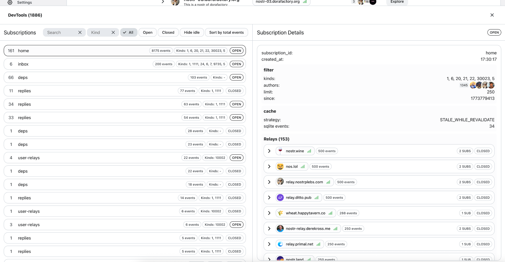 When comes to main following feed, I do a 3 max relays per person per subscription which is configurable, my feed is usually around 100 relays connected out of around 240 relays attempted, sometimes I logged as read-only with Derek npub and set to 14 relays per person to see things fire, it tries to connect to 780 relays but only around 160 was connected.