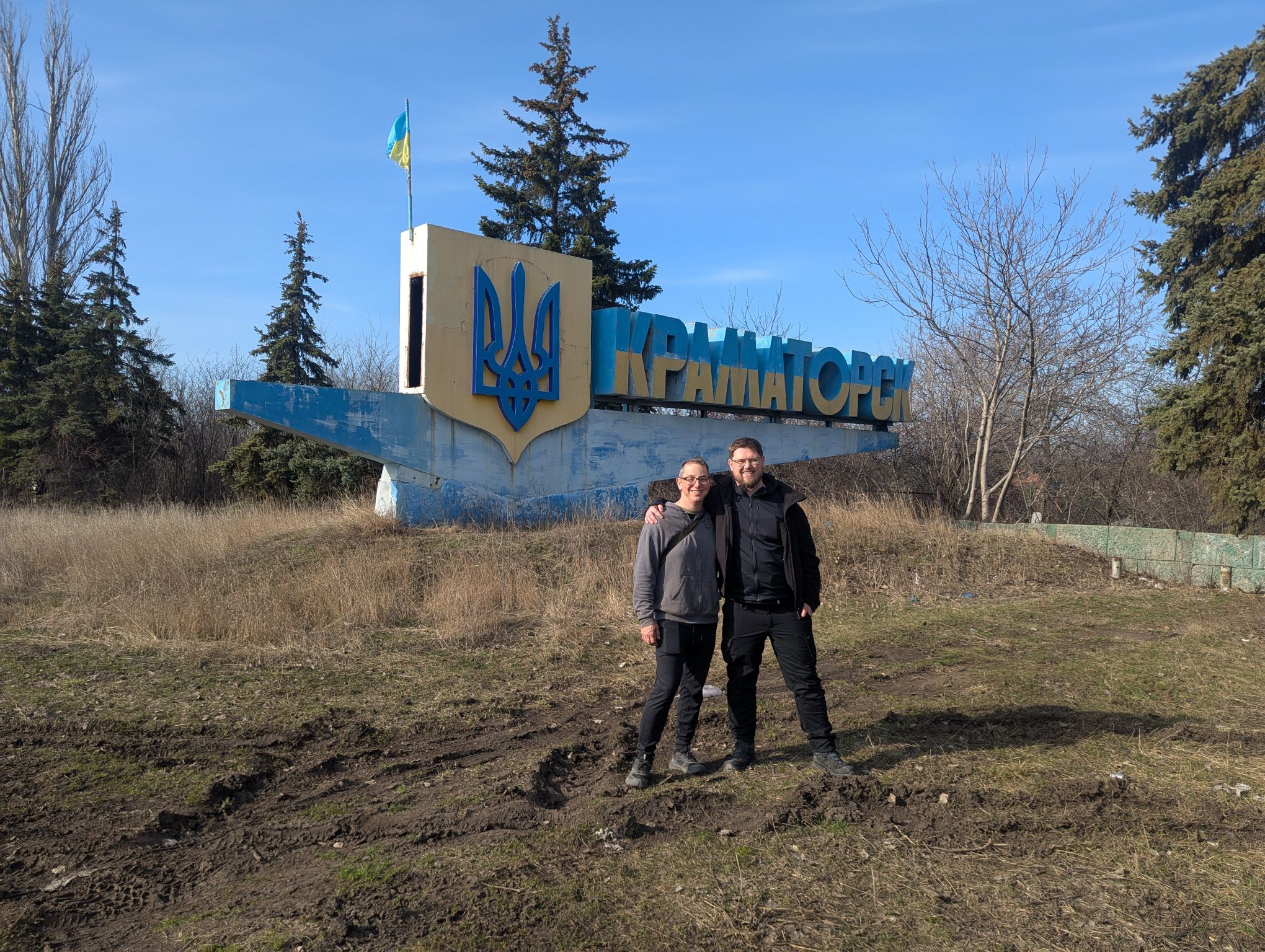 Sarah and I going for a walk to the east edge of Kramatorsk out by the (former) airport:
