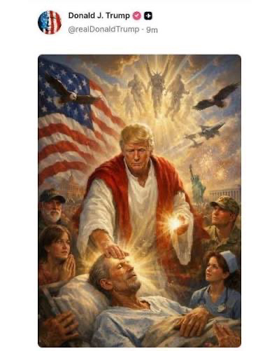 Trumpovi už definitivně přeskočilo. Na své´ síti TruthSocial zveřejnil image sebe jako Ježíše.