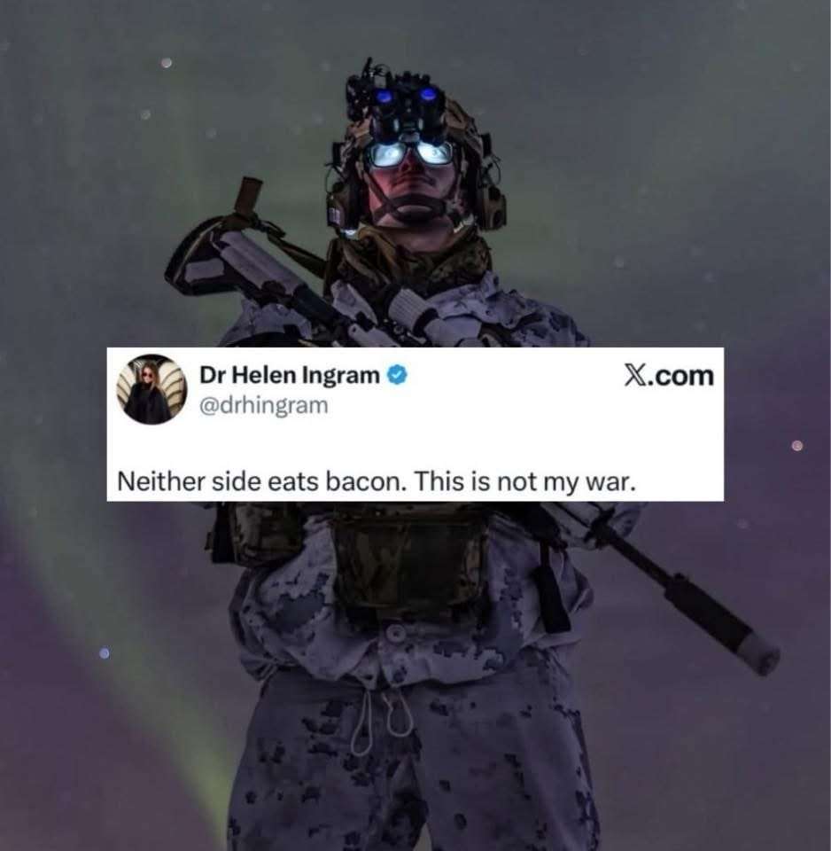 Iran and Israel. Neither eat bacon and that war was provoked and funded by the U.S.
