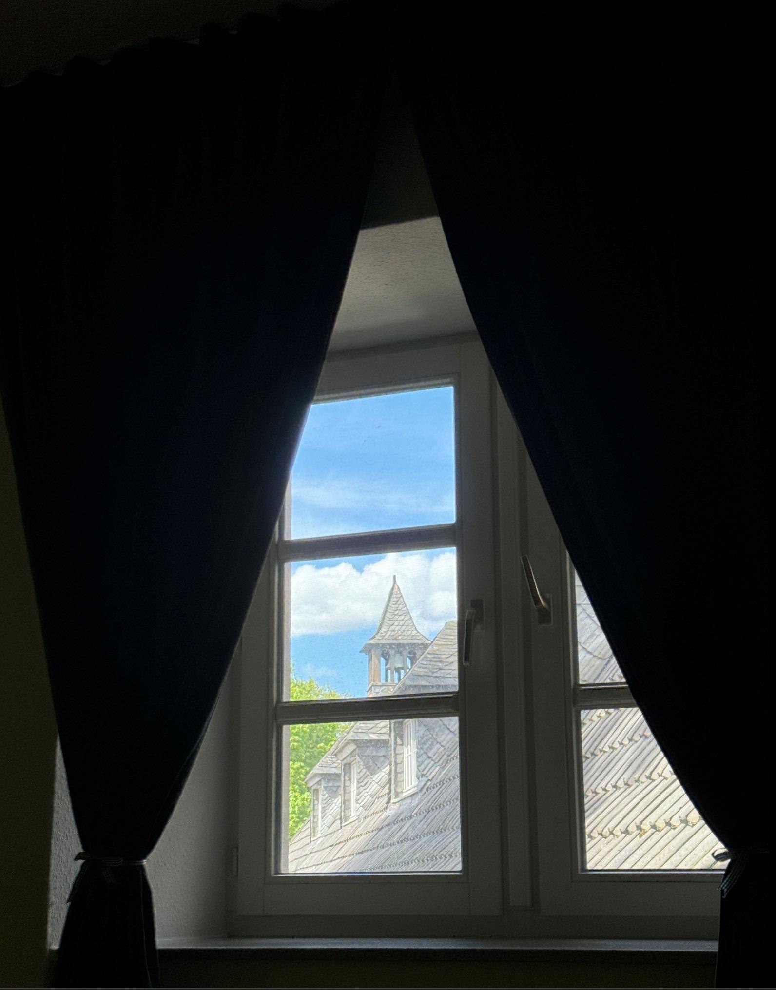 Blick aus einem Gästezimmer in Schloss Schellenberg, Essen (nie wieder!)
