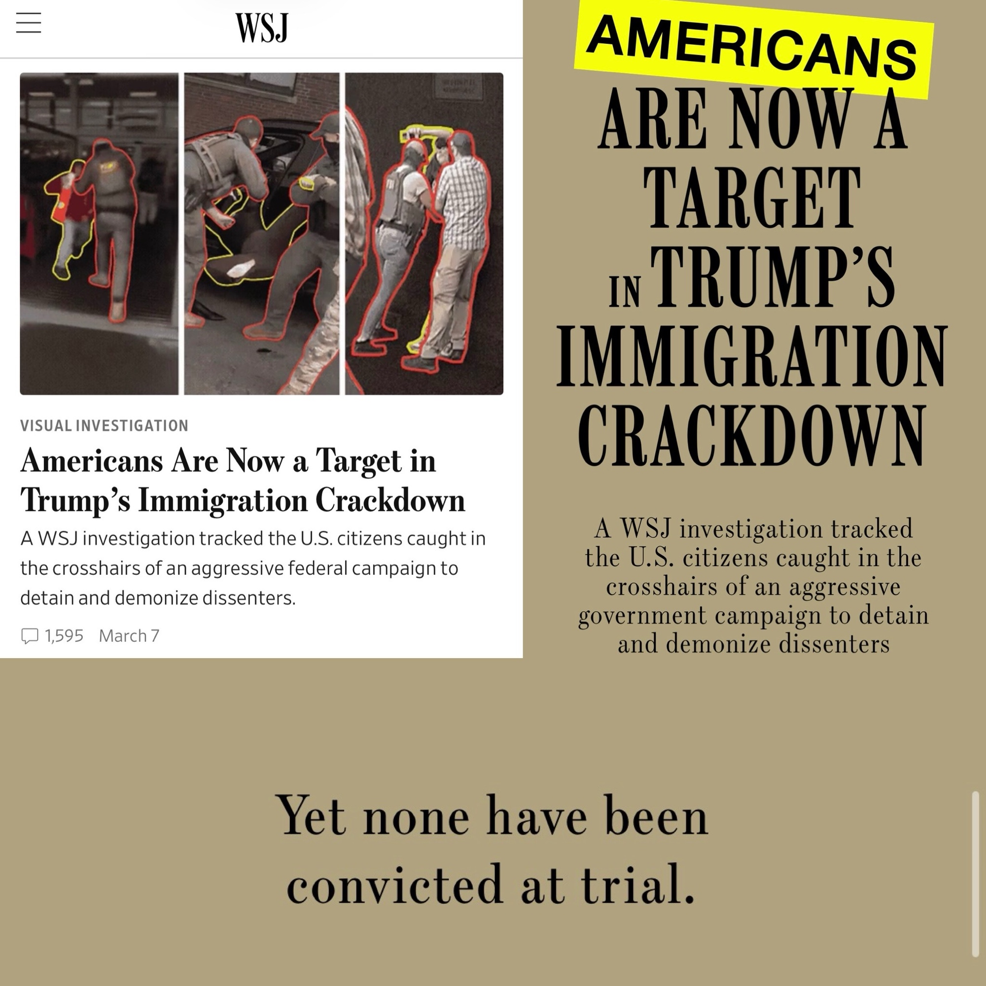 WSJ: “A WSJ investigation tracked U.S. citizens caught in the crosshairs of an aggressive government campaign to detain and demonize dissenters.”