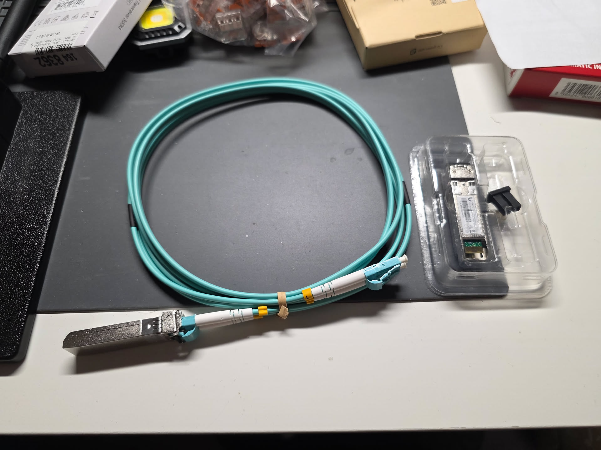 Dneska dorazila optika mezi switch a gateway (GW). AI měla pravdu, ta jede úplně bez problémů.