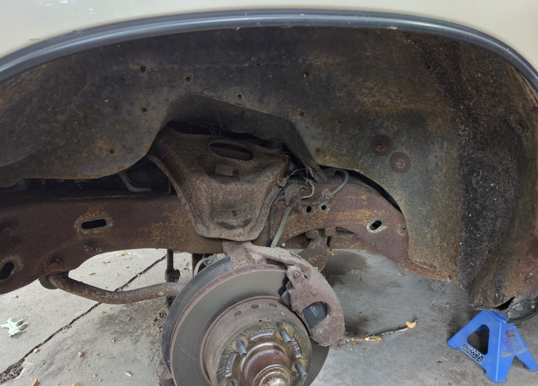 Actually finished with this side (for now) with a little reminder of what it looked like in August...Got the other side broken down except the upper control arm, which is going to be a fight so I saved it for another day.