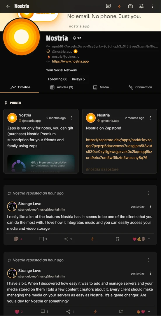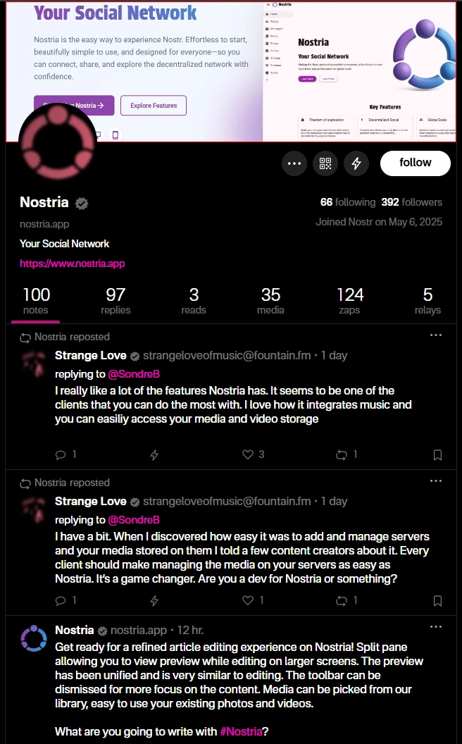 @Nostria profile looks on Primal.