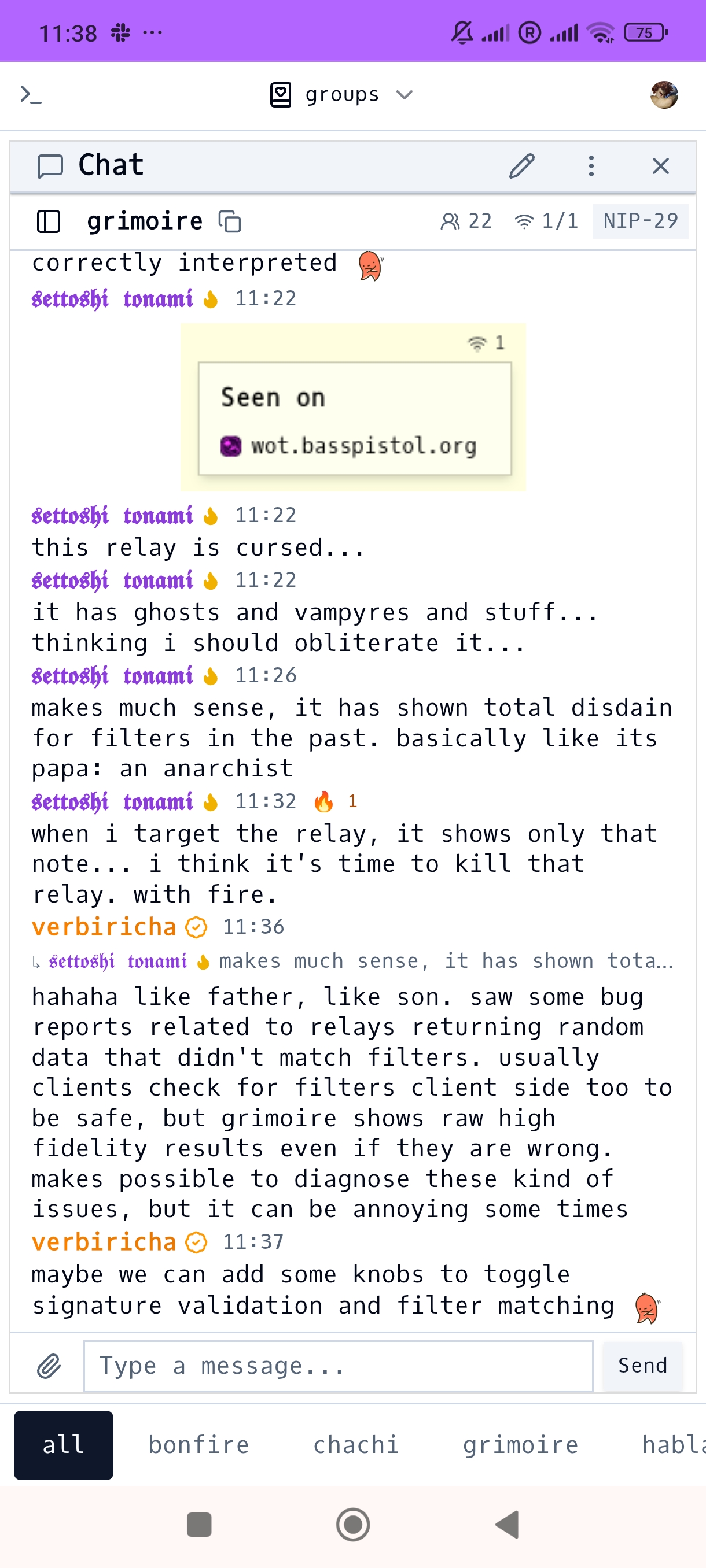 verbiricha @verbiricha 1773312135 @grimoire is a great tool for debugging relay issues. some relays out there are buggy and/or malicious. 3❤️1💜1
