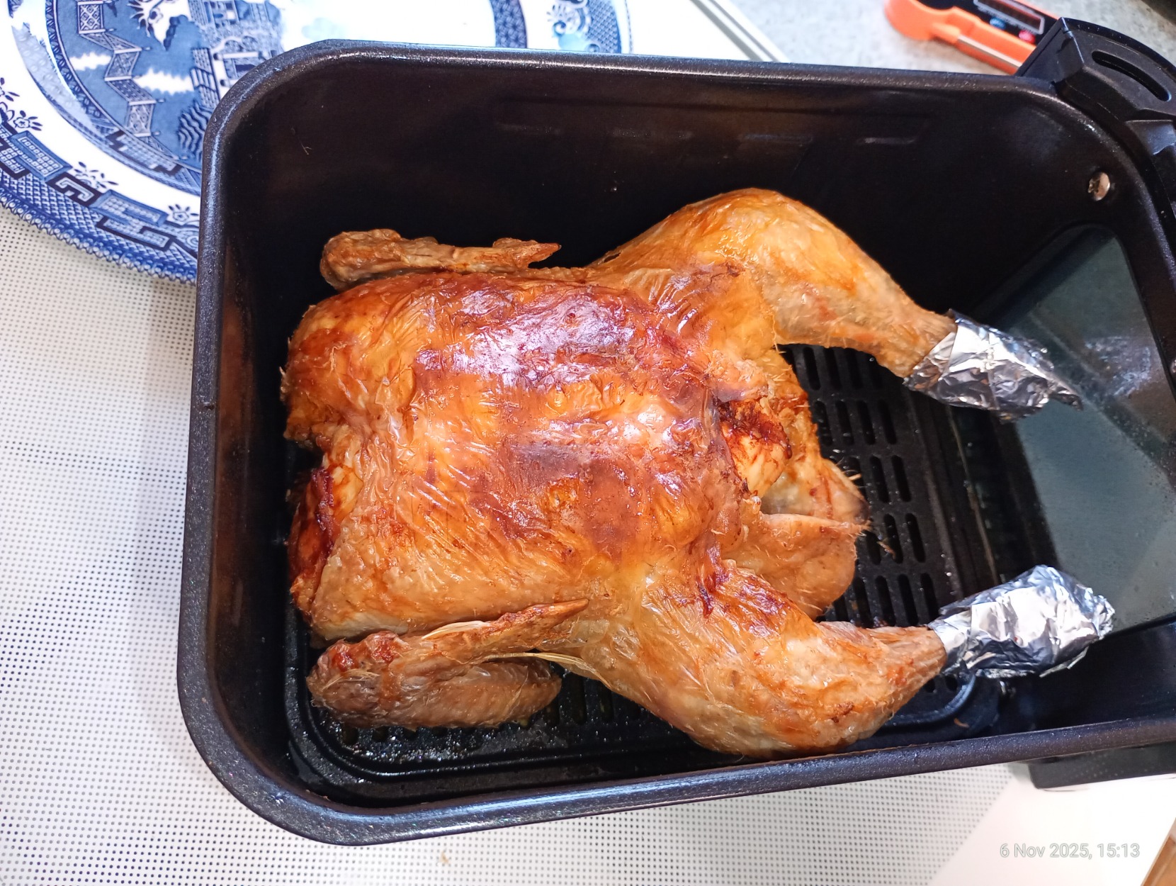 Oh oh.... did the whole xmas dinner in the air fryer... potatoes in bottom drawer and carrots top drawer and other drawer pigs in blankets and stuffing balls. Bought ready cooked chicken even though I could have done that in there too but blah.... and it just sprouts and sweet corn on the stove and oh yes... got tiny packet of sliced german smoke ham. Easiest dinner i've ever done.