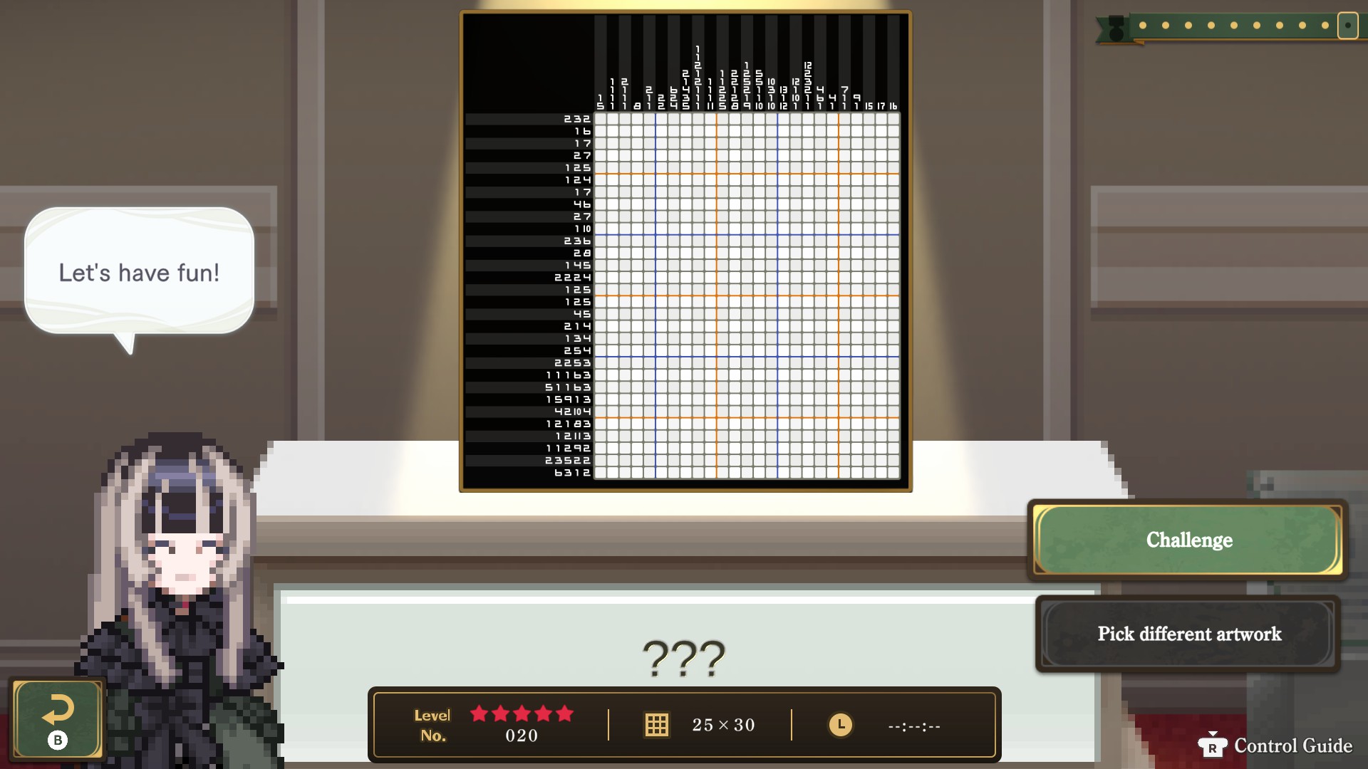 It's like Picross but Nintendo copyrighted that term so people are stuck with "pixel puzzles" or "nonagrams" or other similar terms. This one is Raden flavored which means a lot of art and Japanese stuff she can nerd out about when you solve the puzzle