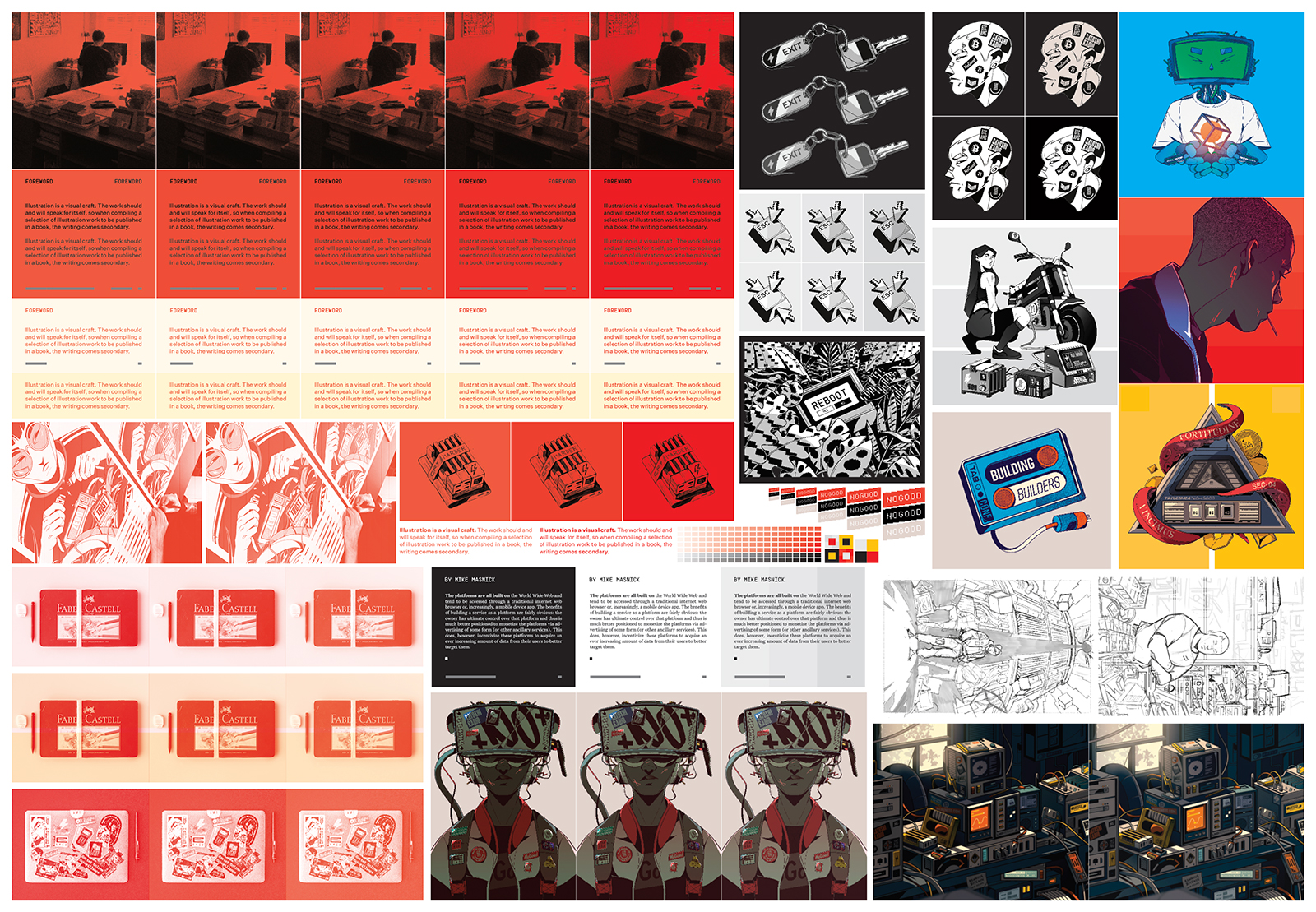 I'm (still) mainly concerned about the black texts and images on red backgrounds, so there's a lot of experimenting with different values and ink build ups.