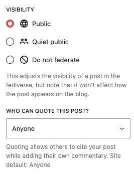 @nprofile1q...@nprofile1q... Aha! När jag går till blogginlägget och ActivityPub-inställningar står där "do not federate". Oklart varför. Nu har jag ändrat, få se om det påverkar. Men förstår inte varför det stod "Do not federate".