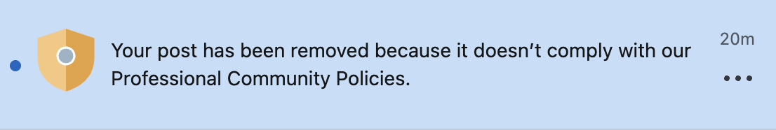 Lol, Linkedin didn't like me posting photos from today's anti-trump, anti-ICE protests. 'Cause, you know, gotta keep it professional when the goons shoot citizens and snatch your neighbors from the streets. Good job, Linkedin. May I recommend selling Hollerith punch cards next?