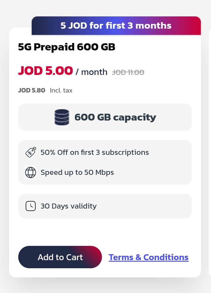 هذا العرض 600 جيجا بـ 5.80 دينار وبعد ثلاثة أشهر يصبح 12.75 دينار .